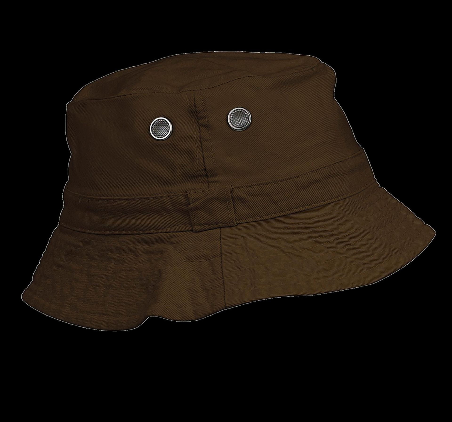 100% Baumwolltwill, vorgewaschen. Doppelt gesteppter Rand. Schweißband. Innen mit Kontrastfarbe Beige. 4 Metall-Luftösen.