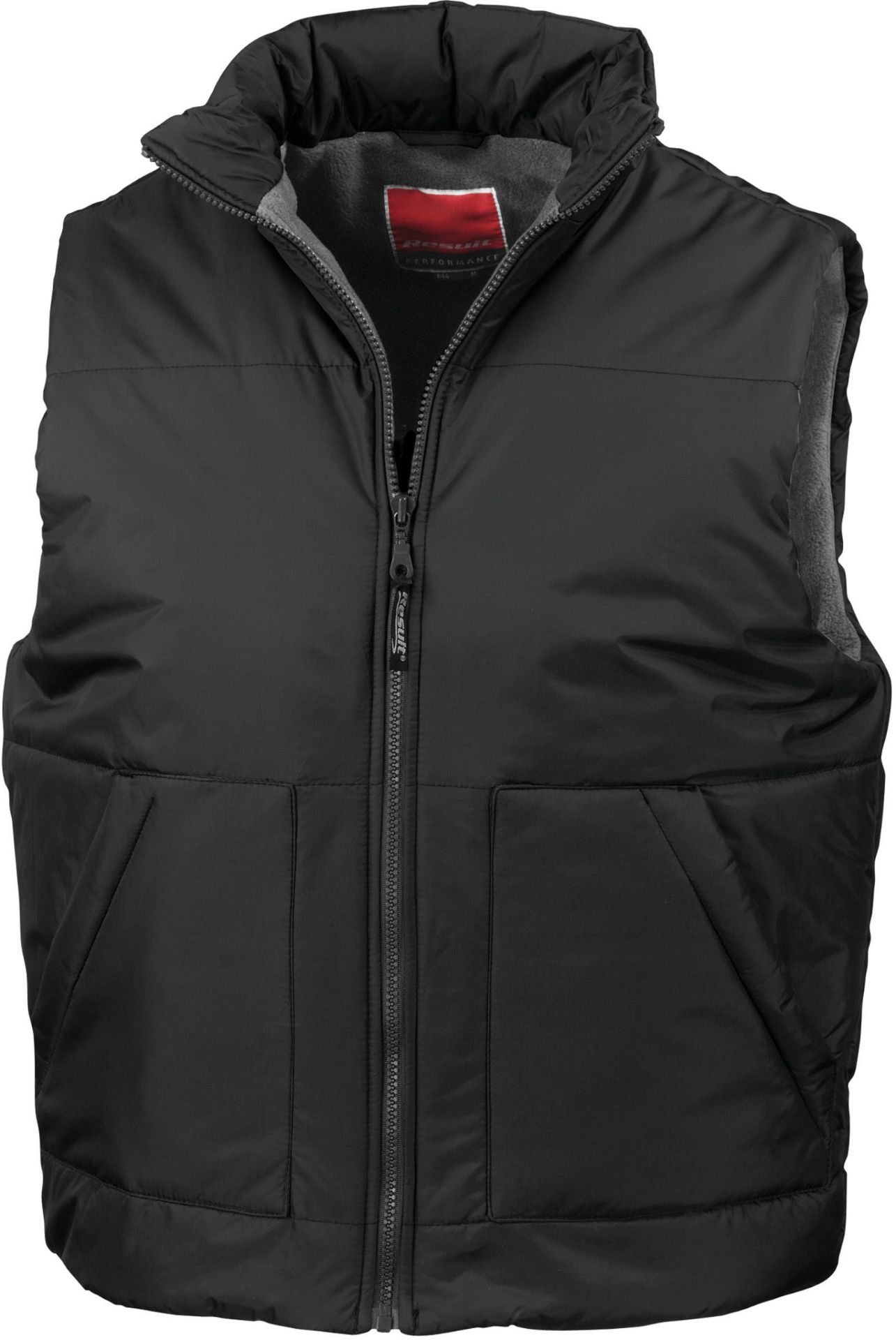 Außen: 100% Polyester. Wattierung: 135 g/m², 100% Polyester. Futter: 280 g/m², 100% Polyester Fleece. Wasserabweisend und winddicht. Stehkragen innen gepolstert. Full Zip. Große Armausschnitte. 2 große aufgesetzte Taschen, innen 1 Brusttasche und 1 Handytasche. Verlängerter Rücken.