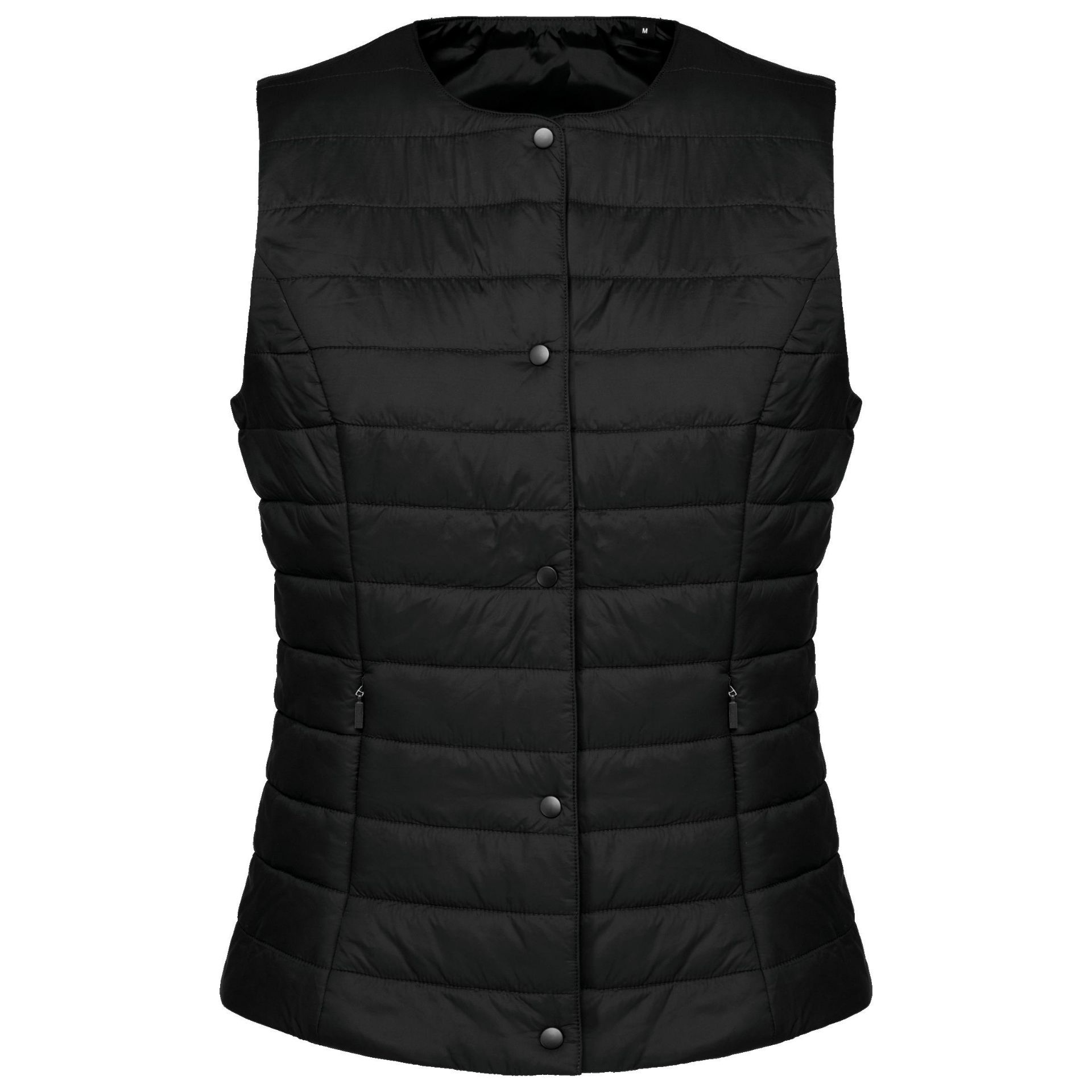 100 % Polyamid. Gerader Schnitt. Thinsulate™-Futter. Ausschnitt mit 2 Seitentaschen und verdecktem Reißverschluss. Farblich abgestimmter Druckknopfverschluss. Reißverschluss zur Veredelung der Innenseite links. Leichte Weste ohne Ärmel, damit sie unter einer Jacke getragen werden kann. Kein Markenetikett, nur Größenangabe, zur einfacheren Veredelung.