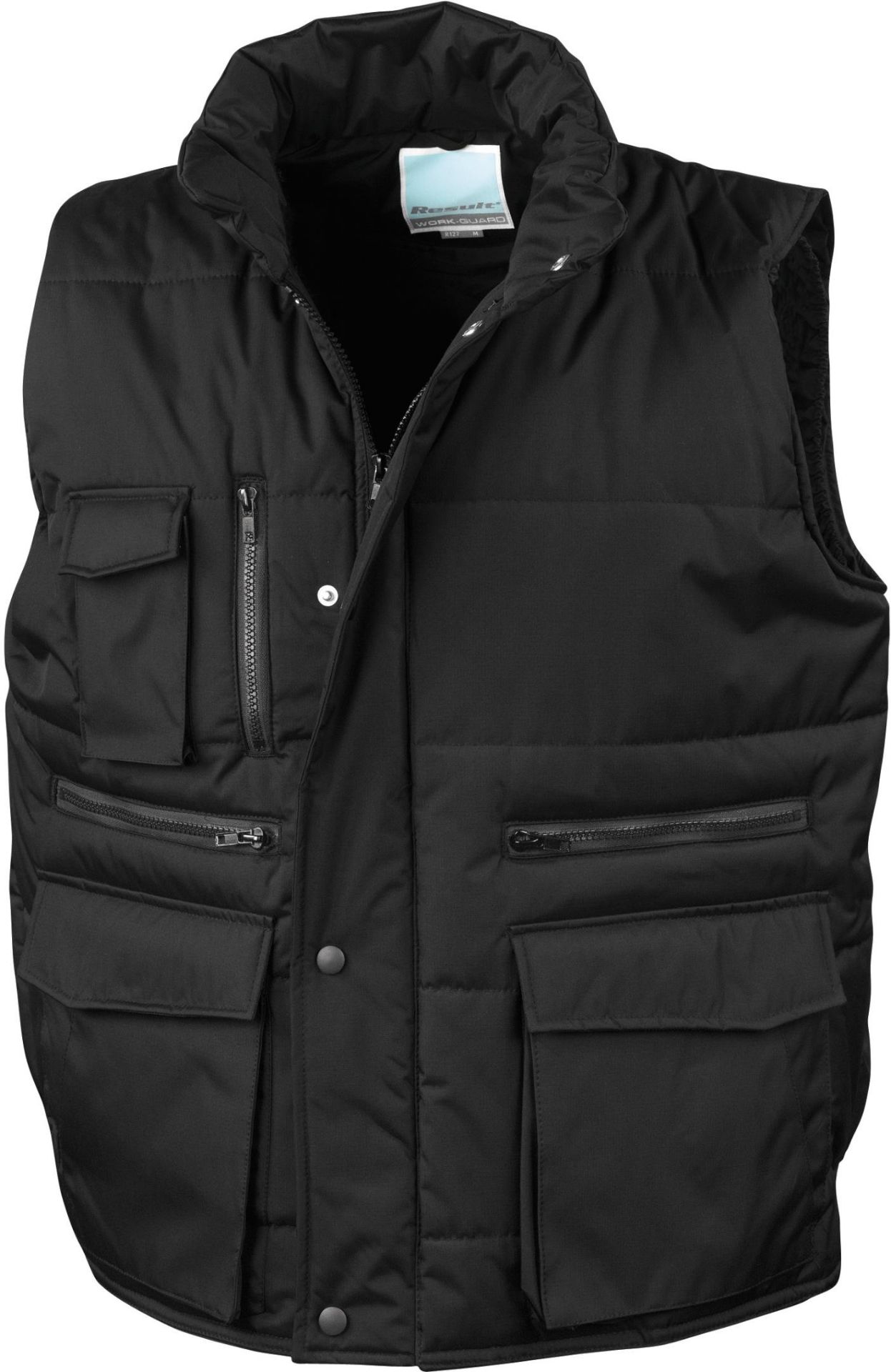 Außen: 100% Polyester (Ripstop) mit Polyvinylchlorid (PVC)-Beschichtung. Wattierung: 180 g/m², 100% Polyester. Innenfutter: 100% Polyester. Winddicht und wasserabweisend. Doppelnähte. Stehkragen. Quergesteppter Body. Weiter Armausschnitt mit elastischem Bündchen. Verdeckter Zip mit Windschutzleiste und Druckknöpfen. Aufgesetzte Handytasche, 3 Zip-Taschen, Seitentaschen mit Klettverschluss und Eingriff, Innentasche. Längerer Rückenteil. Veredelungszugang: unterer Rücken und linke Brustseite.