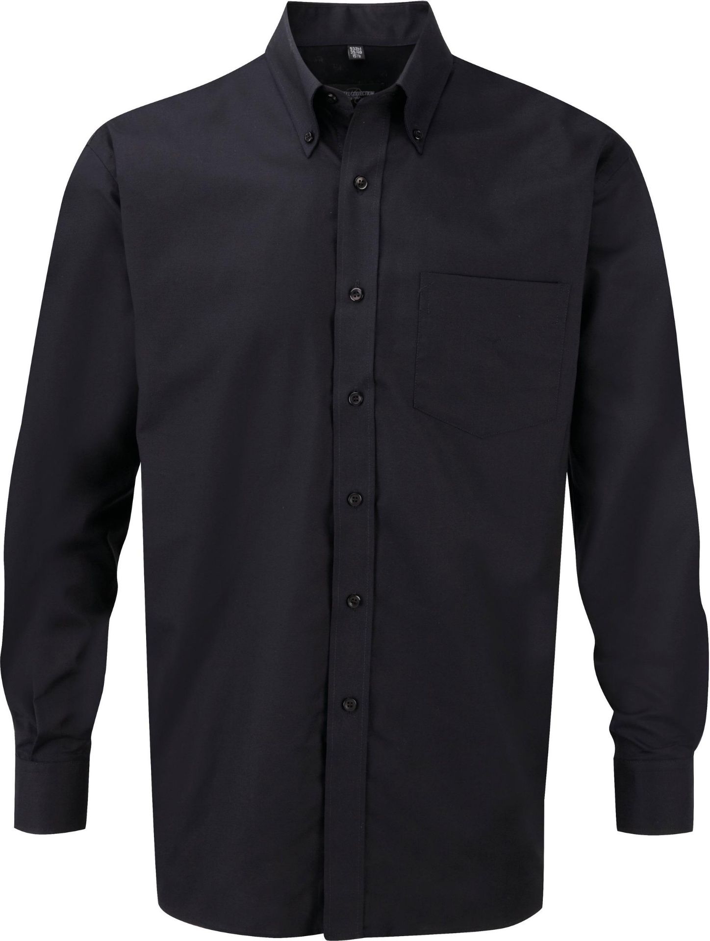 70% Baumwolle / 30% Polyester (Oxford). Langarm. Button-Down-Kragen. Rückwärtige Schulterpasse mit 2 an den Seiten eingelegten Falten, mit 2 Knöpfen verstellbare abgerundete Manschetten, dazu ein Knopf auf dem Manschettenaufschlag. V-förmig zulaufende Tasche vorne links. Klassischer Schnitt. Abgerundeter Saum. Ersatzknöpfe. Pflegeleicht (Easy Care).