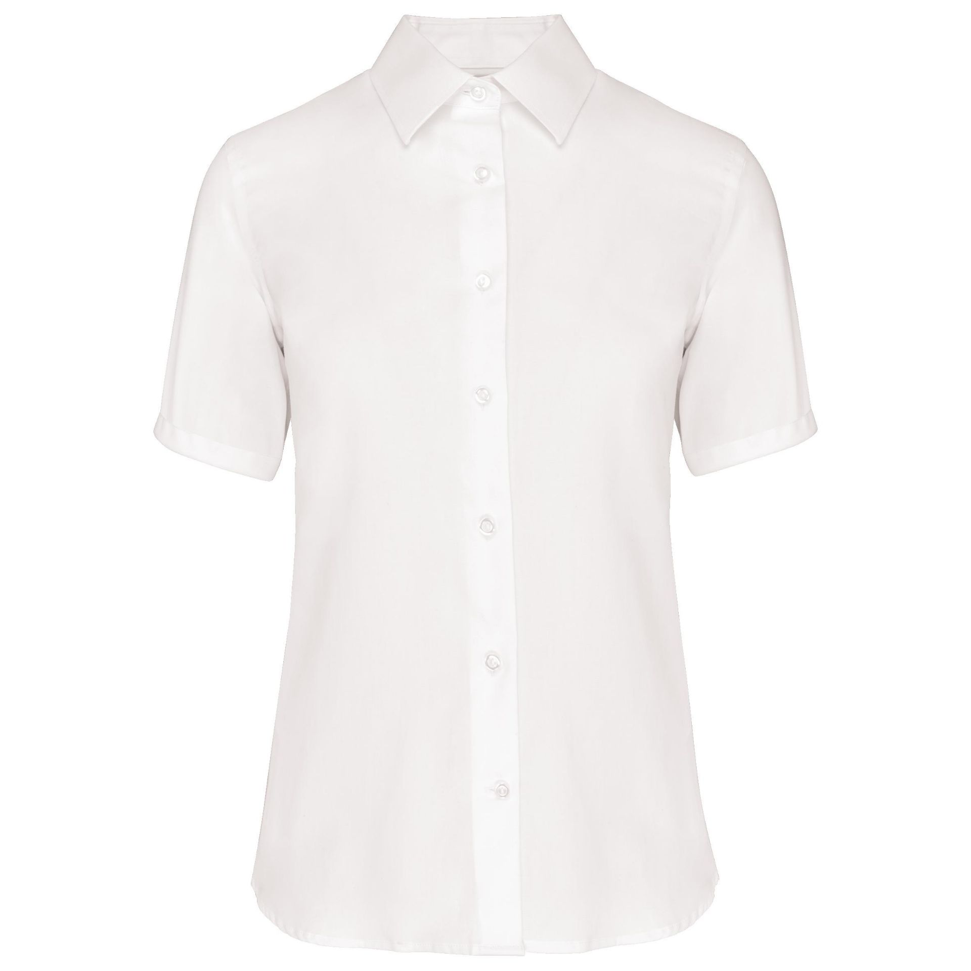 100% Baumwolle Micro Twill. Bügelfreie Bluse. Klassischer, knopfloser Kragen. Farblich abgestimmte Knöpfe. Nahtloser Saum an der Knopfleiste. 1 Ersatzknopf. Abgerundeter Saum.