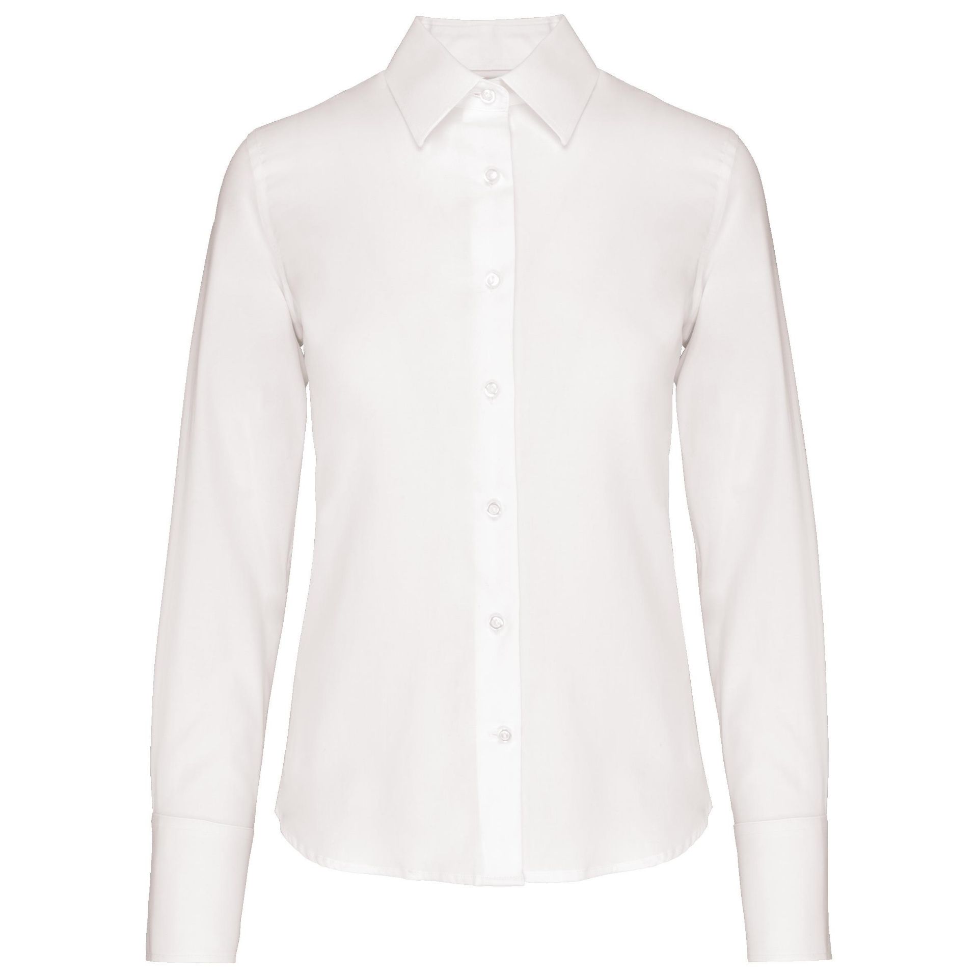 100% Baumwolle Micro Twill. Bügelfreie Bluse. Klassischer, knopfloser Kragen. Farblich abgestimmte Knöpfe. Eckige, verstellbare Manschetten mit 3 Knöpfen. Nahtloser Saum an der Knopfleiste. 1 Ersatzknopf. Abgerundeter Saum.