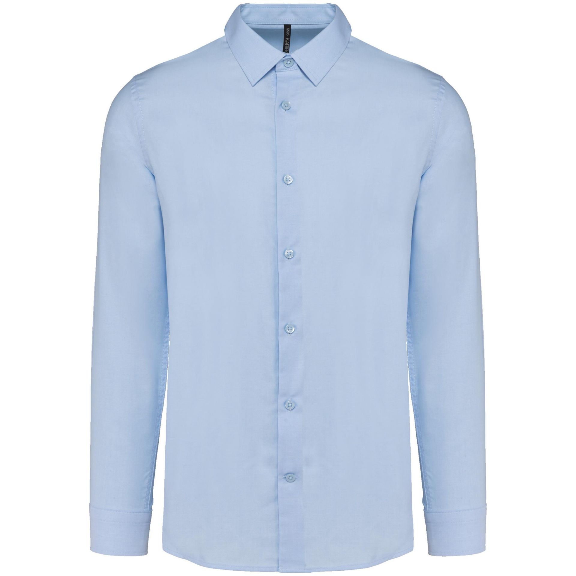 70 % Baumwolle / 30 % Polyester. Oxford-Stoff. Gerader Schnitt. Pflegeleicht (Easy Care-Behandlung). Kragen mit Kragennadeln. Knopfleiste mit Ton-in-Ton-Knöpfen aus Kunststoff. Passe am oberen Rücken. Anpassbare, abgerundete Manschetten mit zwei Knöpfen sowie Manschettenschlitz mit Knopf. Einfache Ziernaht am abgerundeten unteren Saum. Kein Markenetikett am Halsausschnitt, nur Größenangabe, zur einfacheren Veredelung.
