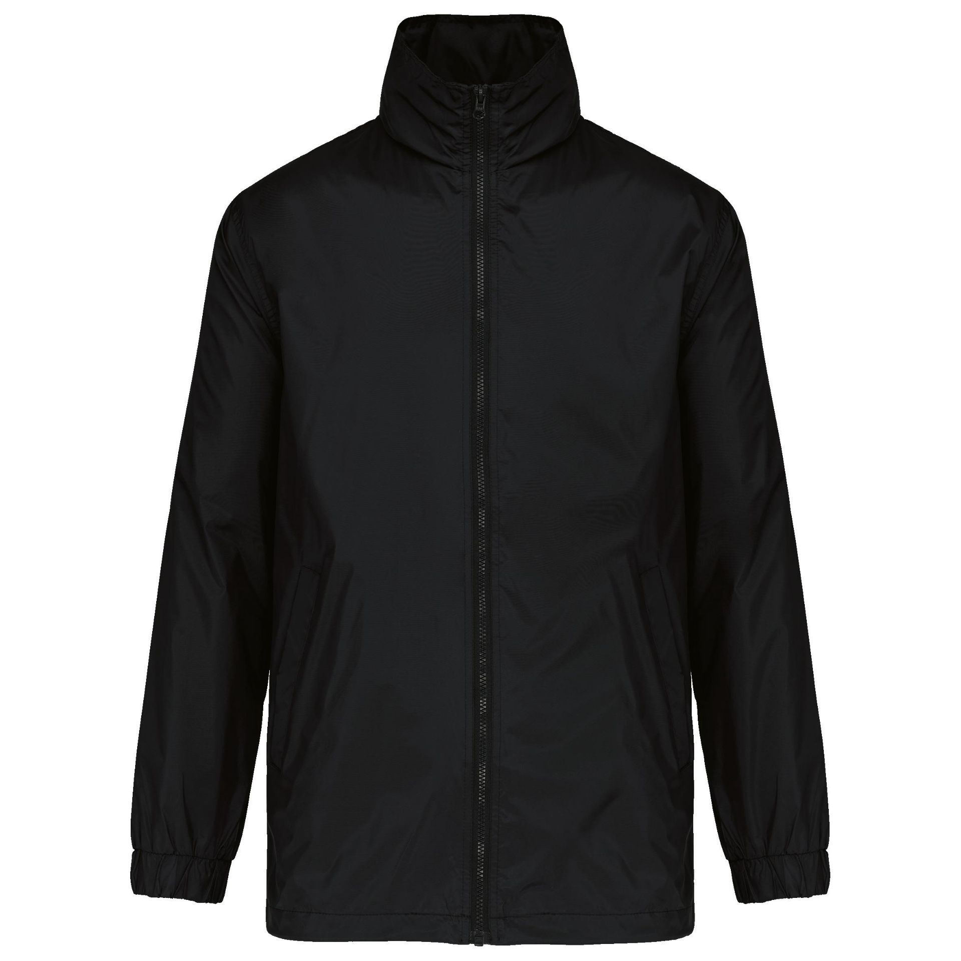 100% Polyamid 210 T mit Acrylbeschichtung innenseitig. Durchgehender Reißverschluss. 1 Innentasche + 2 Seitentaschen mit Klettverschluss. Elastischer Kordelzug mit Stoppern am Bund. Kapuze im Kragen mit Kordelzug.100% Polyester-Jersey. Futter graumeliert. Veredelungszugang an der Innenseite.