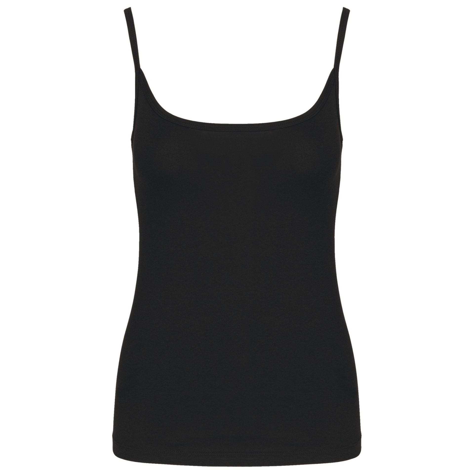 95 % Baumwolle / 5 % Elasthan. (Light Grey Heather : 87% Baumwolle / 9 % Viskose / 4 % Elasthan). Jerseytrikot aus gekämmter Baumwolle. Feine Träger und femininer Schnitt. Doppelnaht am unteren Saum.