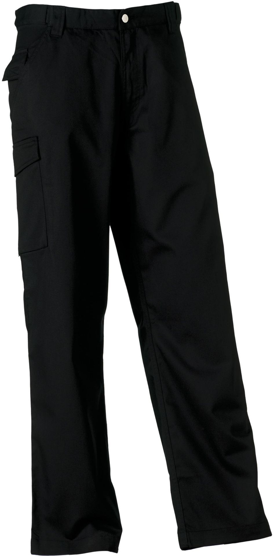 65% Polyester / 35% Baumwolle (Twill). Elastischer Taillenbund für bequemen Sitz. Modisches Design. Gesäßtaschen mit Patten, Handytasche, Cargotasche am rechten Bein. Beinlänge 81cm.