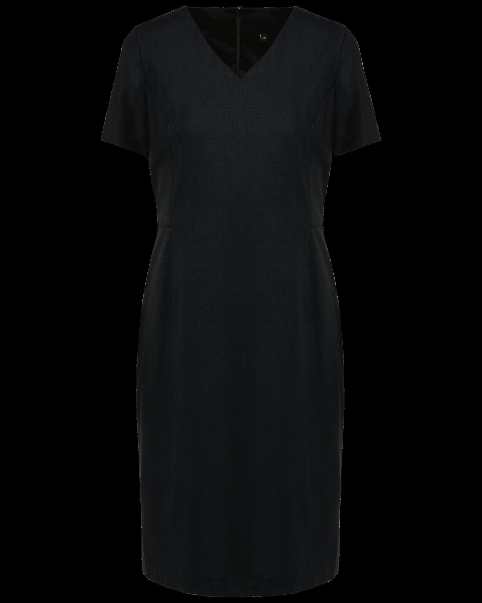 50 % Polyester/23 % Viskose/22 % Wolle/5 % Elasthan. Futter aus 100 % Stretch-Polyester auf dem Rumpf. Princess-Schnitt mit Einsatz an der Naht zum Abflachen und Verstärken. V-Ausschnitt mit gefütterten Ziersteppnähten. Verdeckter Reißverschluss am Rücken. 2 Taillenfalten am Rücken. Dehnfalte am unteren Rücken. Volant-Futter mit Schlitz. Kein Markenetikett, nur Größenkennzeichnung für eine leichtere Veredelung.