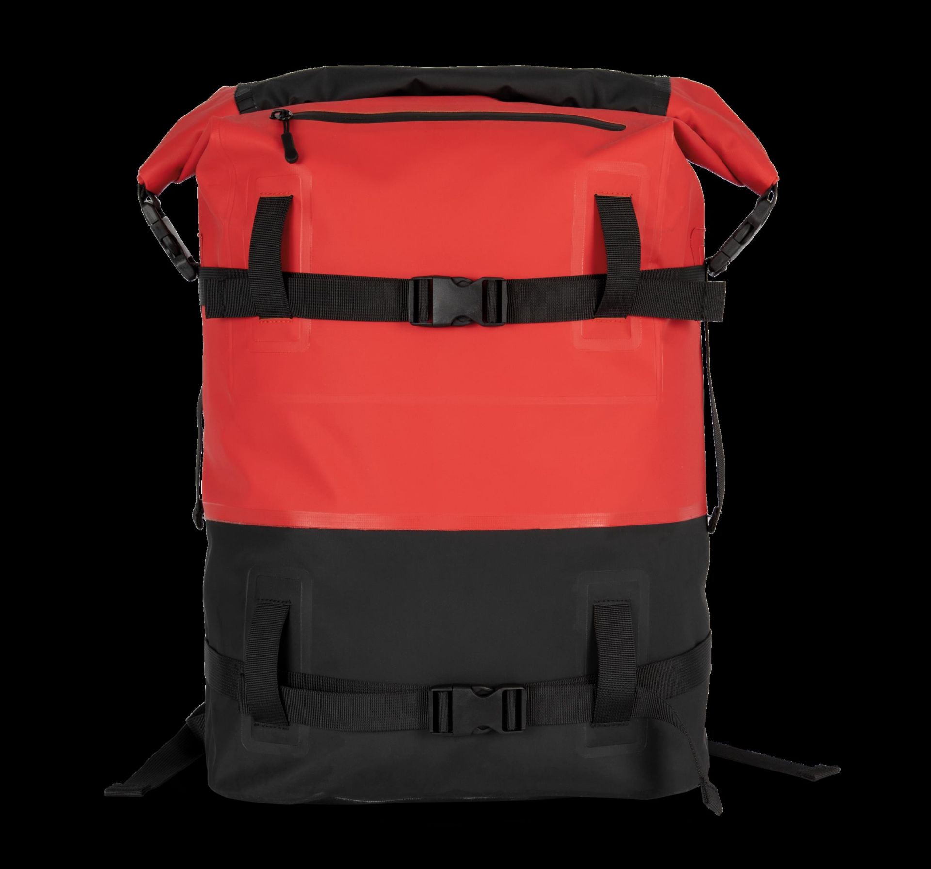 100 % Polyester. 100 % wasserdichter Rucksack mit Kompressionsriemen zur Stabilisierung des Inhalts. Roll-Top-Verschlusssystem. Vordertasche mit Reißverschluss, 100 % wasserdicht. Bequeme und atmungsaktive Träger. In den Brustgurt eingearbeitete Sicherheitspfeife. Ideal für Wassersport oder Motorradfahren.