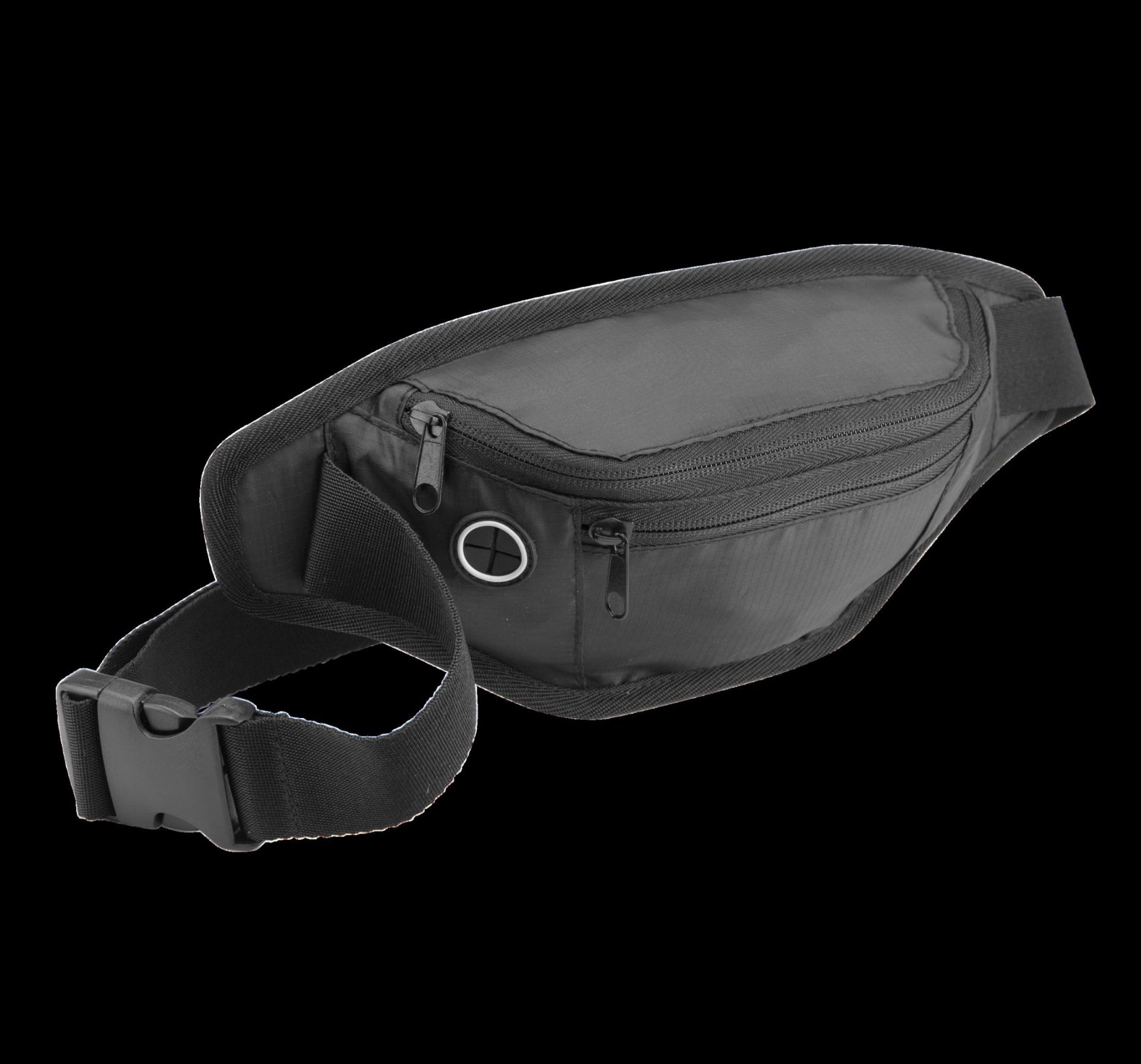 Hüfttasche/Gürteltasche aus 210D Ripstop. Großes Hauptfach mit Reißverschluss, Netzinnentasche, schmales Frontfach. Kopfhörerkabel-Durchzug.