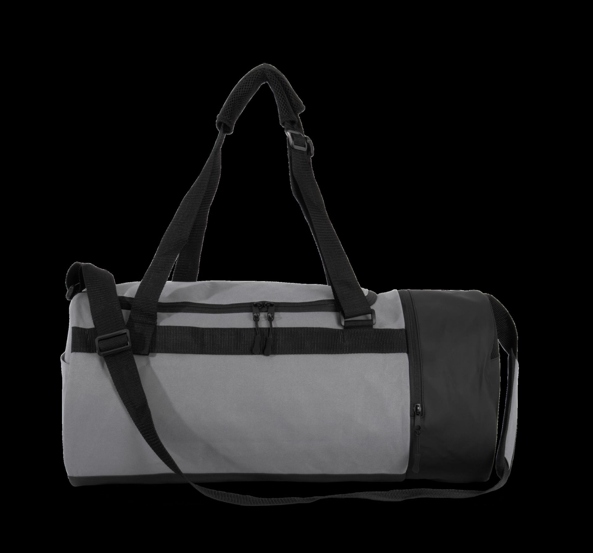 100 % Polyester. Schlauchförmige Sporttasche aus 600D Polyester. Mit einem durch einen Reißverschluss abgetrennten Schuhfach und einem abnehmbaren Schulterriemen.Kann dank der zwei breiten Tragegriffe, die als Träger eingesetzt werden können, auch als Rucksack getragen werden.