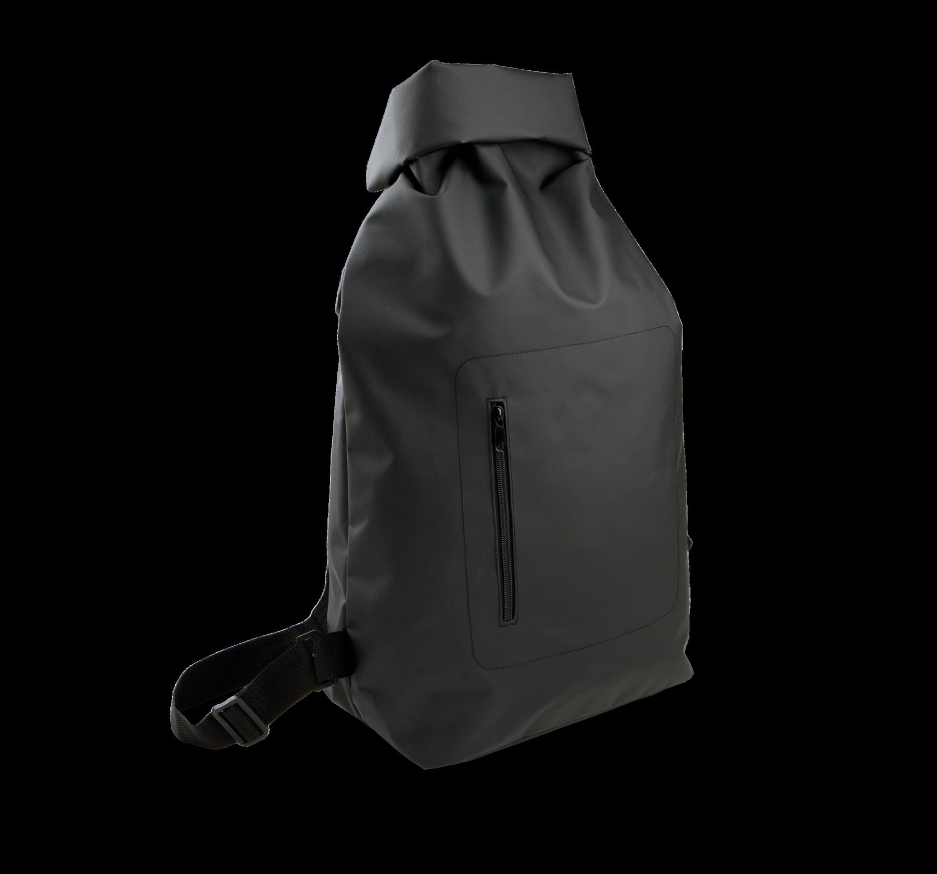 Barrel-Tasche aus Polyvinylchlorid (PVC) Roll-Top, oberer Verschluss mit Reißverschluss & Schnalle, einstellbarer Schultergurt, Vordertasche mit wasserdichtem Reißverschluss.