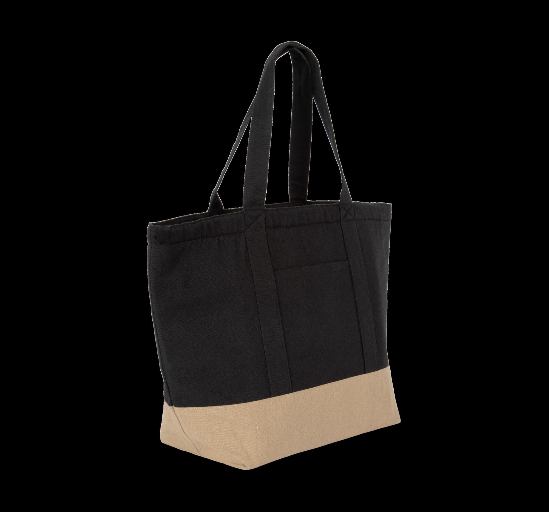 75 % recyceltem Baumwolle / 22 % recyceltem Polyester / 3 % andere Fasern (Black Night). 67 % recyceltem Baumwolle / 30 % recyceltem / 3 % andere Fasern (Ecume). Polyester. 100 % veredelbare Fronttasche. Reißverschluss oben.