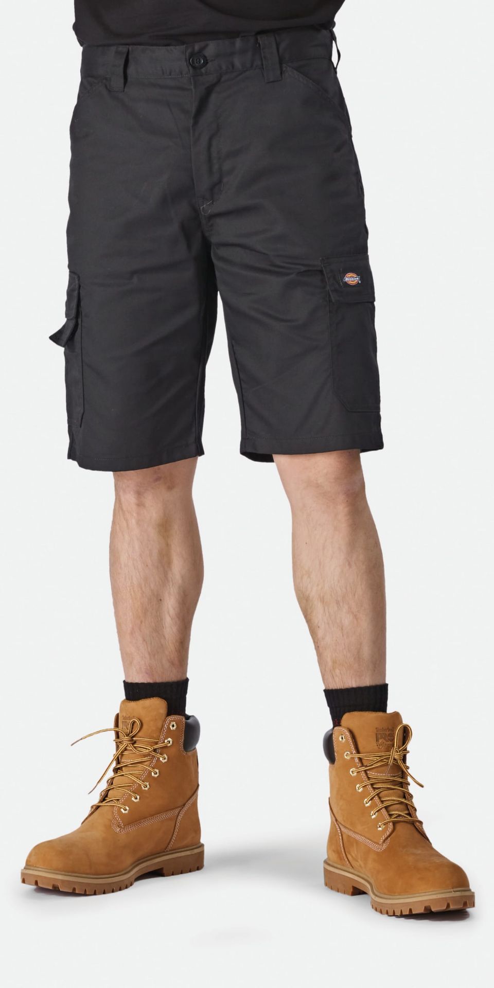 65% Polyester, 35% Baumwolle. Short ohne sichtbare Metallteile. 2 Einschubtaschen vorne. Auf dem linken Oberschenkel 1 Cargotasche und 1 Werkzeugtasche, mit Klettverschlüssen. Auf dem rechten Oberschenkel 1 Handytasche mit Klettverschluss. 2 Gesäßtaschen mit Klettverschlüssen. Knopf und Kunststoff-Reißverschluss. Waschbar bei 60°.