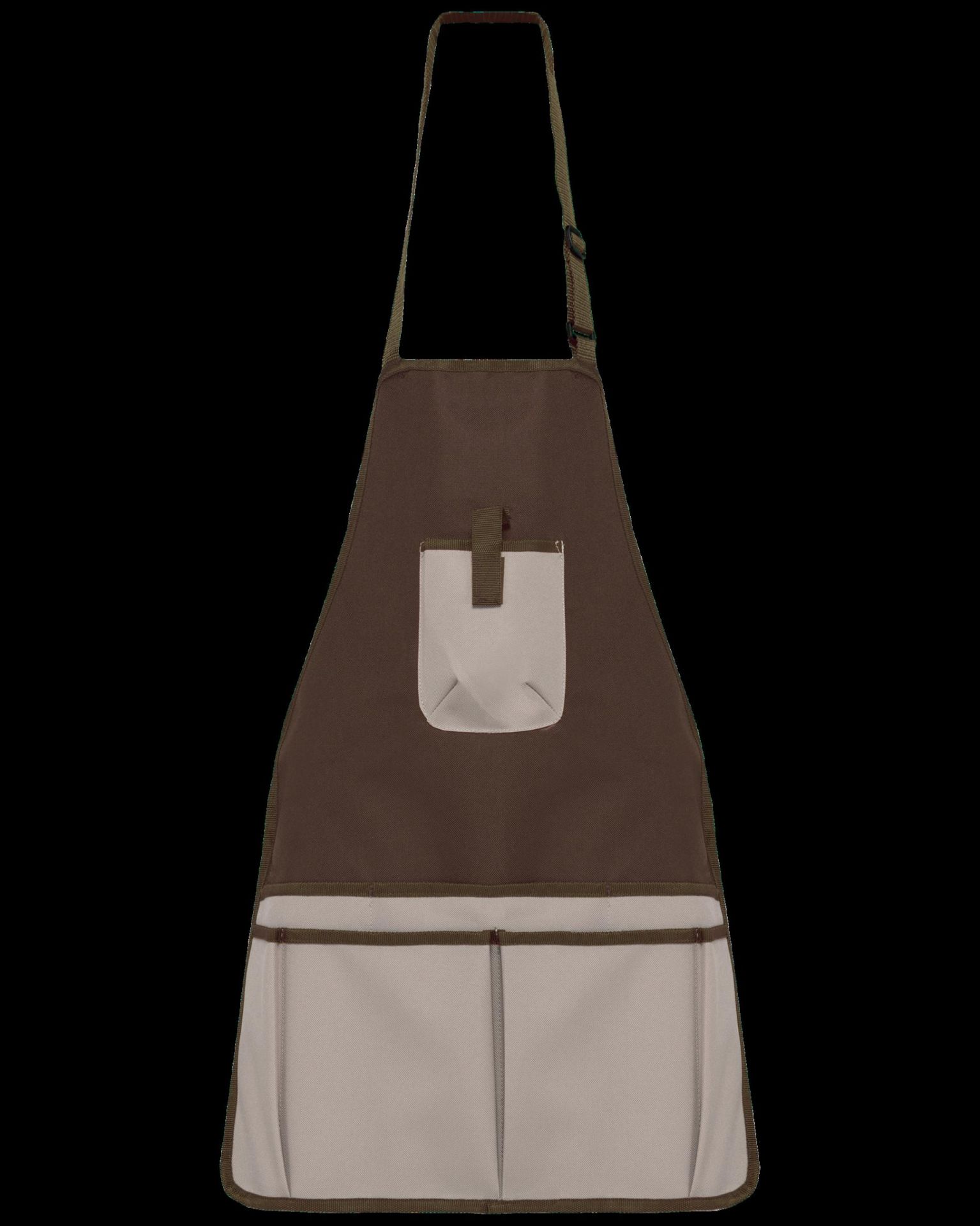 100 % Polyester. Aus 100 % recyceltem Polyester. Beschichteter, bis 4.000 mm vollständig wasserdichter Oxford-Stoff. 7 offene Taschen auf zwei Ebenen mit kontrastfarbenem Schrägband. 1 Brusttasche mit Klettverschluss. Mit Verstellriemen und Schnalle aus recyceltem Kunststoff am Hals und an der Taille größenverstellbare Schürze. Gesamtlänge der Schürze = 60 cm. Breite des Schürzenunterteils = 46 cm.