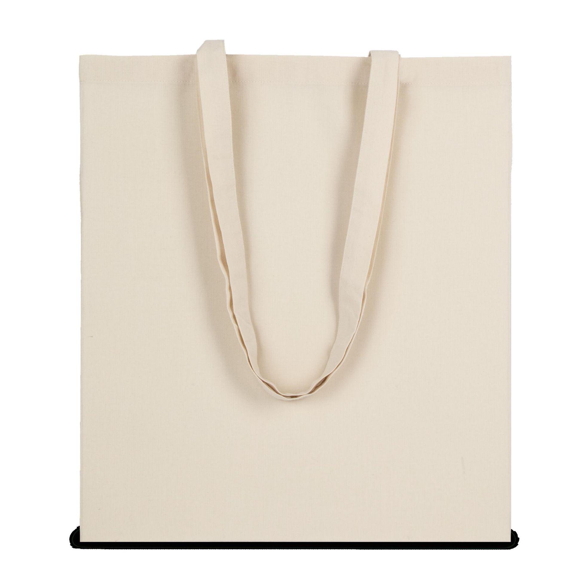 100 % recycelter Polyester. Weiches Material. 70 cm lange Tote Bag mit Griffen aus recyceltem Polyester.