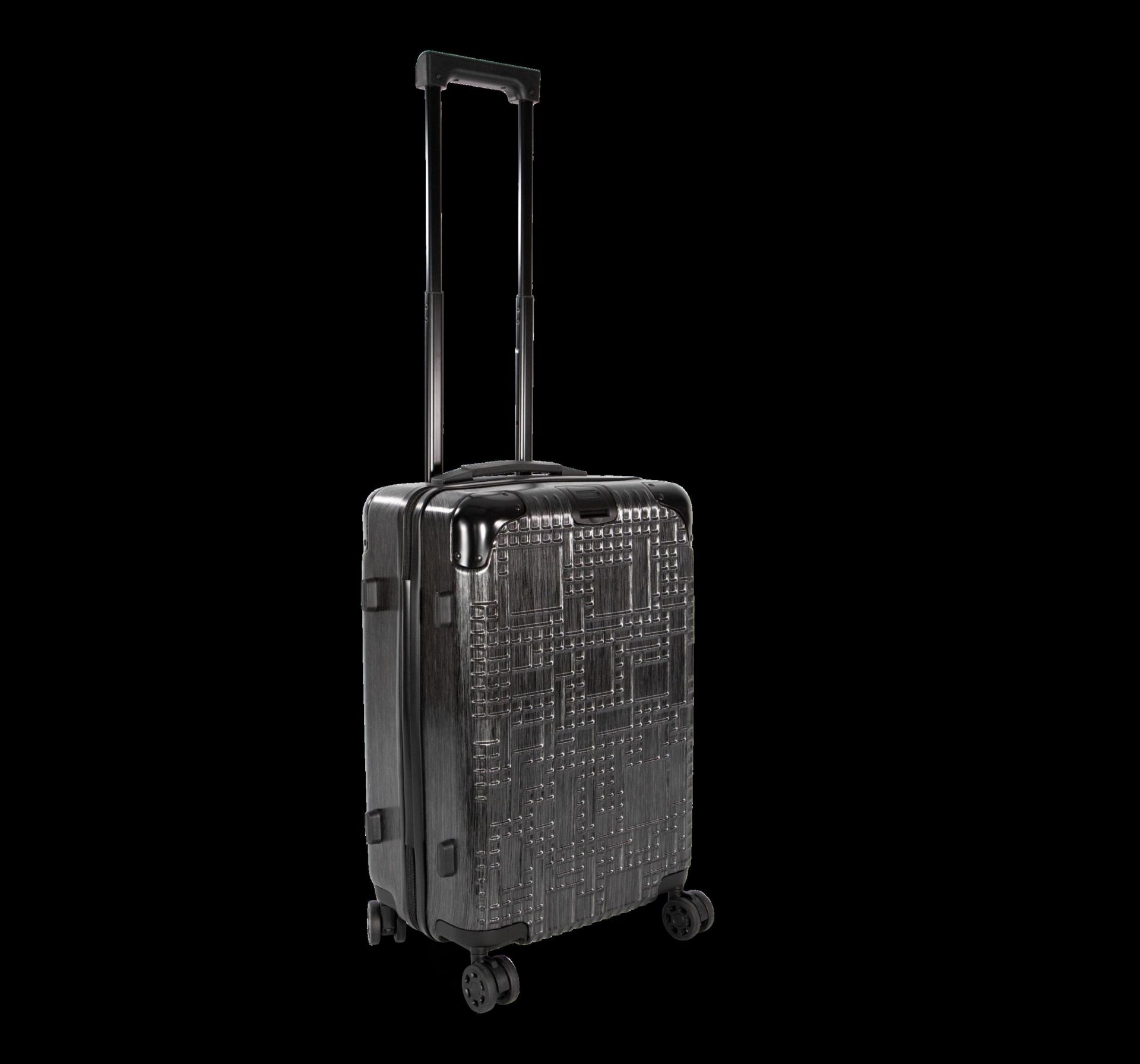100% Polycarbonat. Trolley-Kabinentasche. Dieser Aluminium-Trolley mit geometrischem „Geoline“-Design zeichnet sich durch vier multidirektionale Räder sowie seitliche Schutzfüße aus, um den Koffer auch auf der Seite abstellen zu können.Die Ecken bestehen aus Kautschuk für optimalen Schutz. Für einen hohen Benutzerkomfort bietet er Folgendes: einen Teleskopgriff oben sowie einen seitlichen Tragegriff, einen einziehbaren Gurt auf der Vorderseite zum Befestigen und Transportieren einer Dokumententasche, zwei Innenfächer, wobei eines mit einem Befestigungsgurt und das andere mit einem Reißverschluss ausgestattet ist, sowie Taschen für Zubehör.Für Ihre Sicherheit ist der Trolley mit einem TSA-Schloss mit Zahlenkombination ausgestattet.