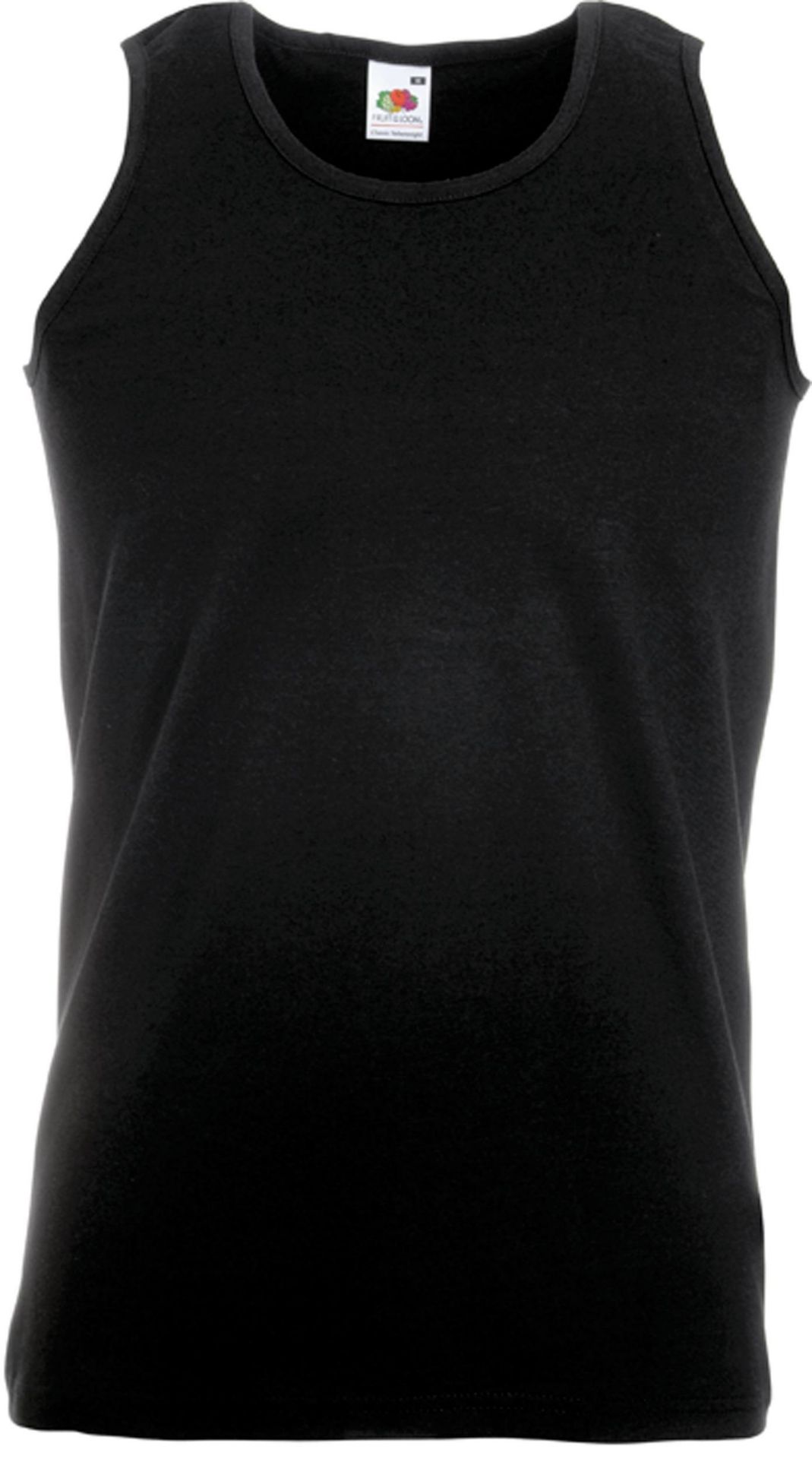 100% cotton (Heather Grey: 97% cotton/3% polyester). Tubular cut. Self-fabric binding to neck and armholes.