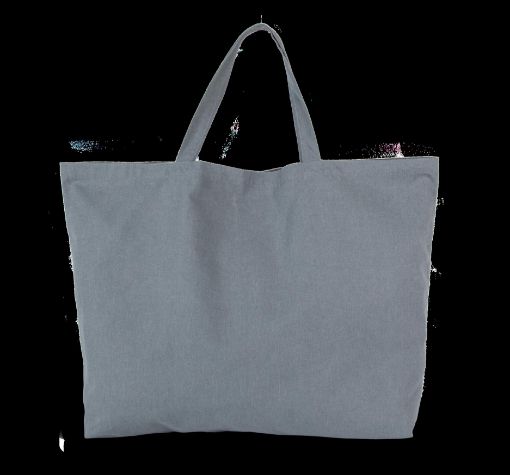 Recycled cotton / recycled polyester. Very large shopping bag with handles in the same fabric as the bag. This bag is part of the “K-loop” project. With this project, Kimood is literally closing the loop of the circular economy. The cotton used comes from waste generated in the production of cotton items for the Kariban brand, and the KARIBAN BRANDS range. The added polyester comes from recycled PET plastic bottles. During the recycling process, tracers are added to the yarn in the form of viscose and ceramic filaments to act as a unique digital fingerprint. The tracers reflect light in a unique way and therefore carry a clear and tamper-proof code. This allows us to unequivocally store in a blockchain all the information from the processes the yarn has been subjected to. Thanks to the Aware™ tracer technology and associated blockchain platform, Kimood allows the end consumer to track the entire production process. This guarantees that the product has been recycled using its own waste, with no possible alterations in the process. A special label with a QR code provides access to the Aware™ platform for direct authentication of certifications using a smartphone.