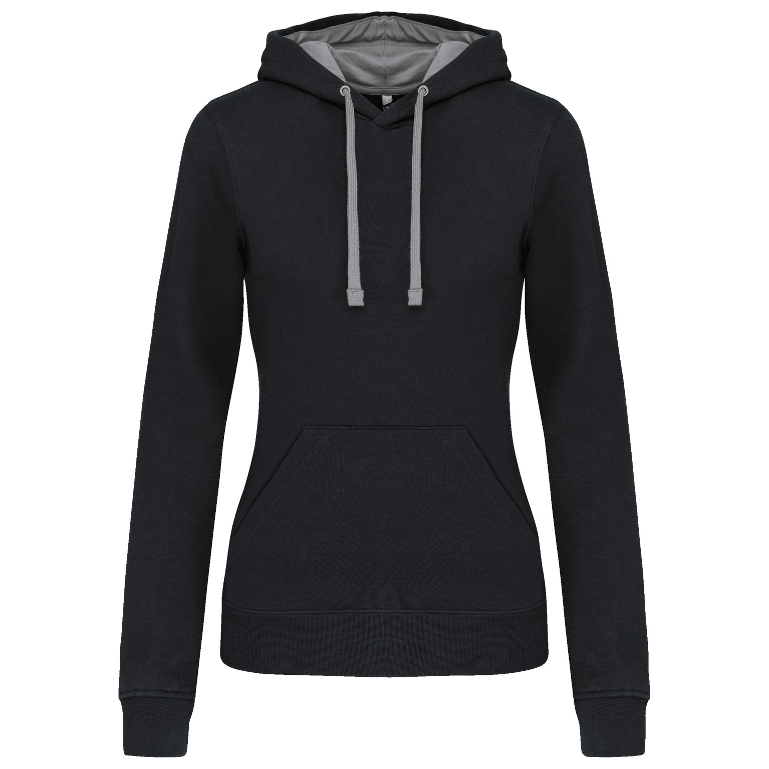 80% cotton/20% polyester. Combed cotton. Brushed fleece. Kangaroo pocket with earphone access. Ribbed cuffs and hem. Contrast lined hood with drawcord.