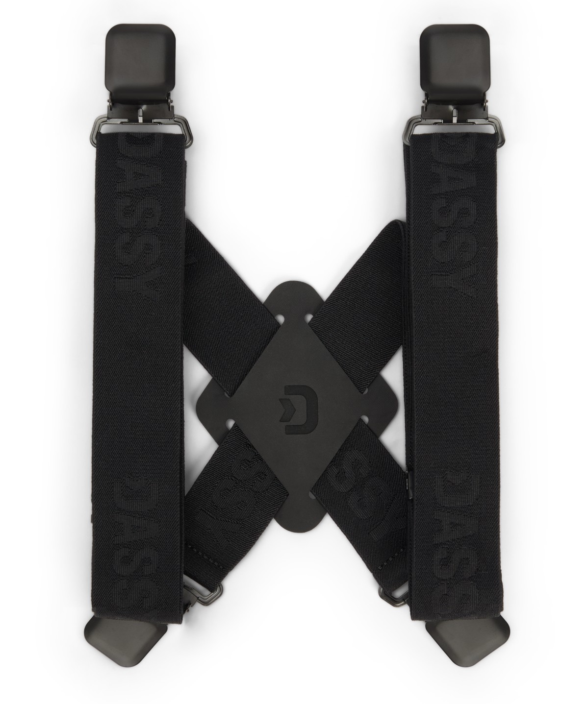 Un accessoire tendance pour compléter votre tenue de travail! Ces bretelles noires et extensibles avec logo DASSY® sont faciles à attacher à votre pantalon de travail DASSY® via des clips en métal. Grâce à la forme en X ajustable, vous pouvez personnaliser l'ajustement. Vu chez DASSY® Accessories.