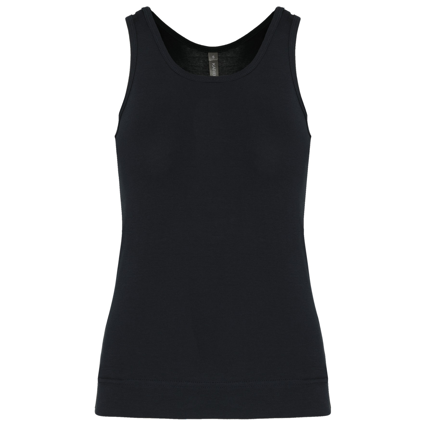 100% coton. Côte 1x1. Dos nageur. Finition double aiguille.