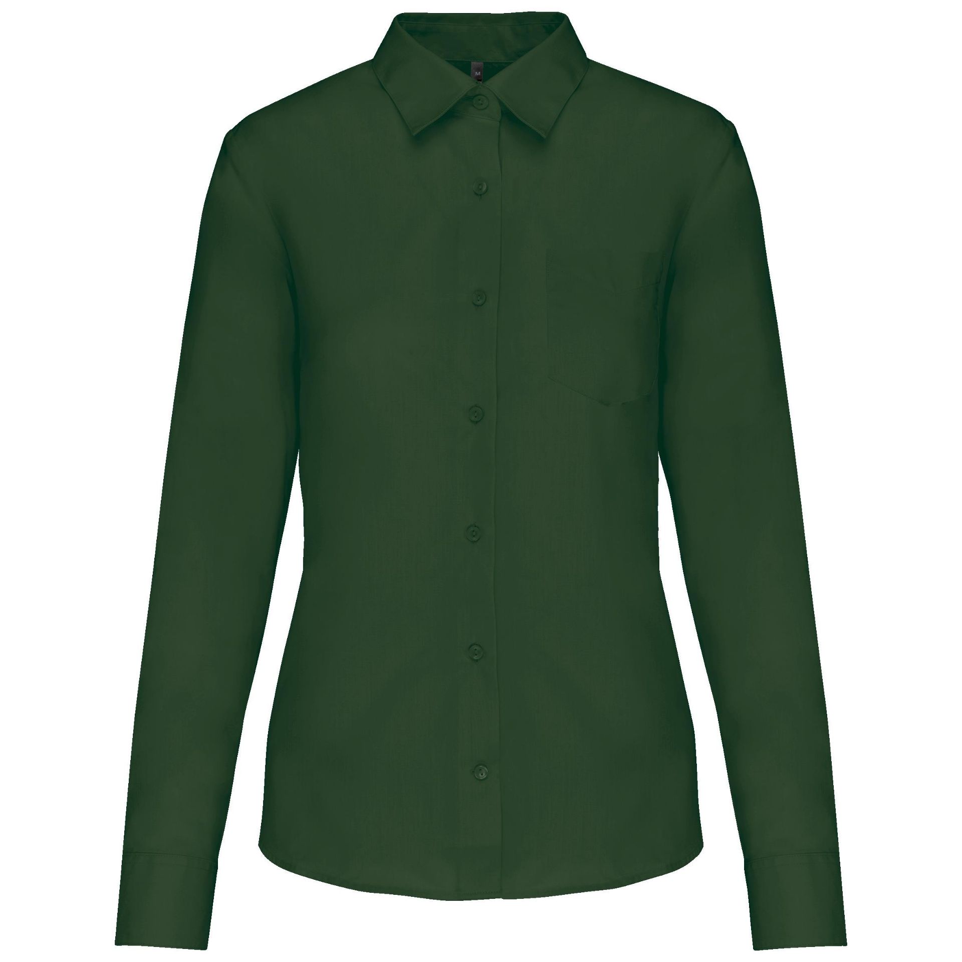 65% polyester / 35% coton. Tissu popeline. Entretien facile. Col non boutonné. Boutons ton sur ton. Poche poitrine côté gauche en V. Poignet réglable à angles arrondis avec patte de manche indéchirable. 1 bouton de rappel. Bas arrondi.