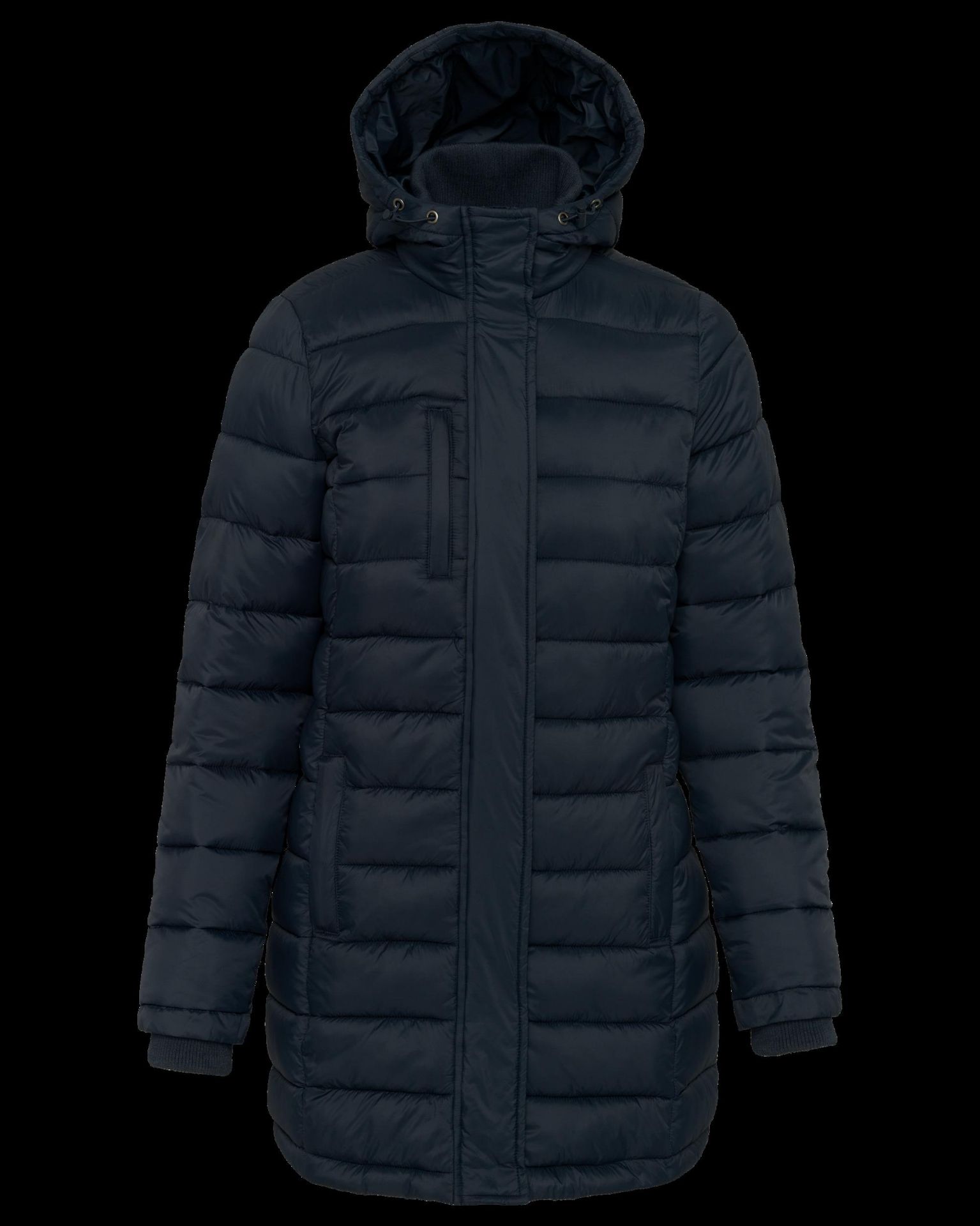 100% polyamide. Garniture intérieure polyester. Chaude et ultralégère. Coupe cintrée. 2 poches devant et 1 poche poitrine zippées et passepoilées. Fermeture zippée avec double curseur cachée par patte et boutons pression. Intérieur col et poignets en bord-côte. Intérieur col et poignets en bord-côte. Intérieur capuche et corps contrasté : Convoy Grey pour Black. Intérieur capuche et corps ton sur ton : Navy pour Navy. Garnissage injecté : le grammage peut varier selon les zones du vêtement. Le poids total est indicatif.