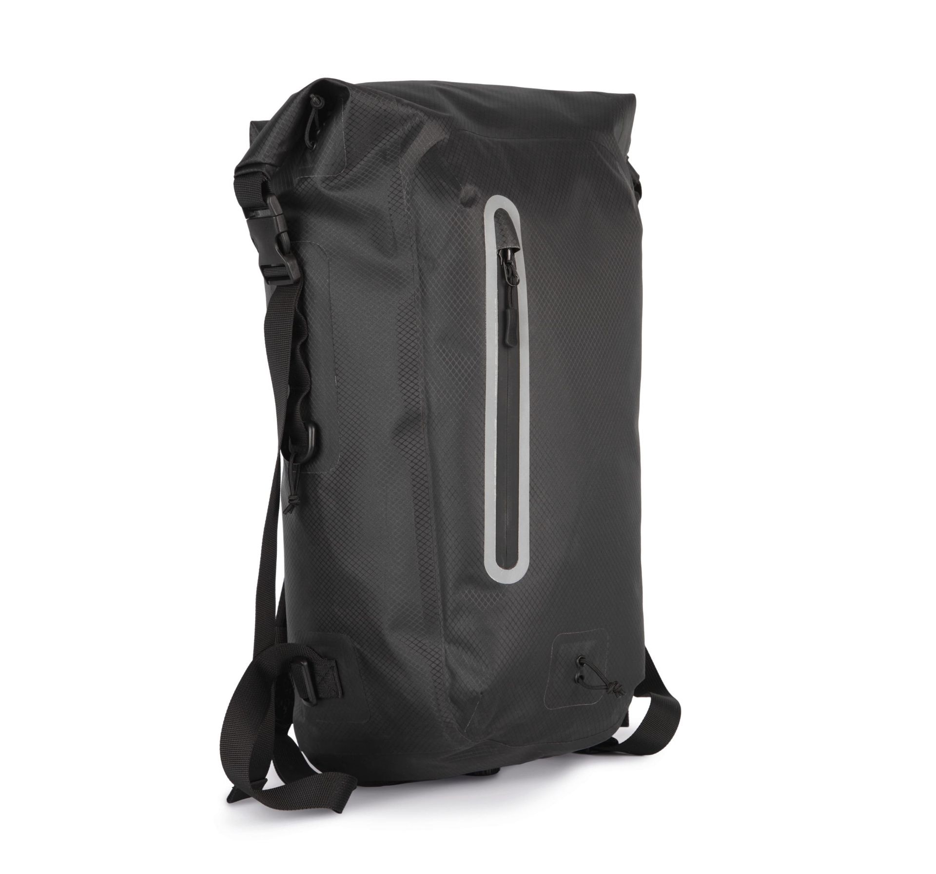 100% polyester. Sac à dos résistant à l'eau avec compartiment pour casque. Le filet porte-casque peut être rangé dans la petite poche avant prévue à cet effet et résistante à l'eau. Système de fermeture enroulée roll-top. Poche avant verticale avec fermeture éclair. Bretelles confortables et respirantes. Clapet de purge dans le compartiment principal pour évacuer l'air et l'eau. Sifflet de sécurité incorporé dans la sangle de poitrine.
