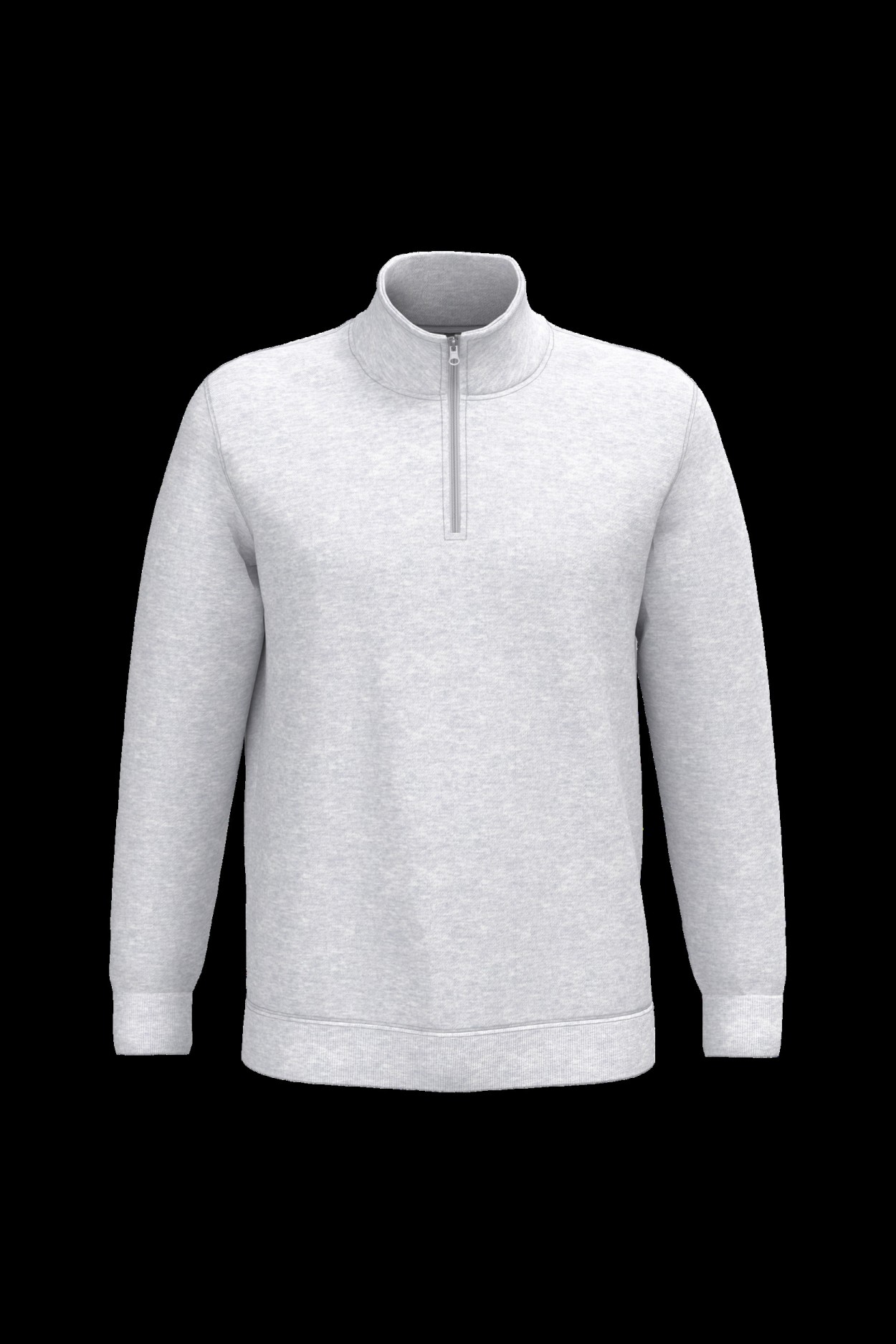 80% coton / 20% polyester. Coton peigné. Molleton gratté. Manches montées. Col zippé avec bande de propreté ton sur ton. Finition bord-côte bas de manches et de vêtement.