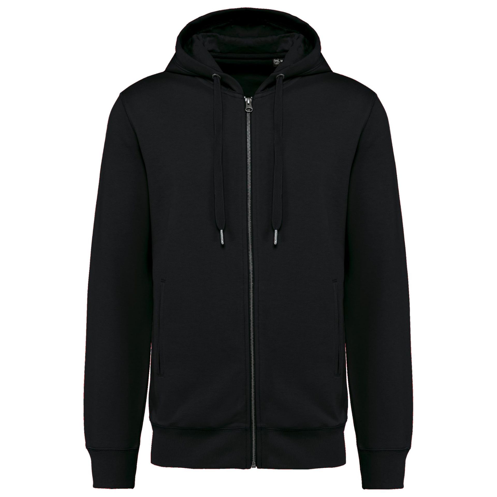 80% coton biologique / 20% polyester recyclé post-consumer. Oxford Grey 75% coton biologique / 25 % polyester recyclé post-consumer. Molleton non gratté French Terry LST (Low Shrinkage Terry). Tissu : lavage aux enzymes. Coupe ajustée. 2 poches passepoilées devant. Fermeture zippée métal. Bord-côte bas de manches, de vêtement et pourtour de capuche doublée avec cordon de serrage ton sur ton avec embout métal. Finition demi-lune encolure dos pour faciliter la personnalisation de marque à l'intérieur. Bande de propreté chevron intérieur col. Pas d'étiquette de marque au col, uniquement une puce de taille pour faciliter la personnalisation.