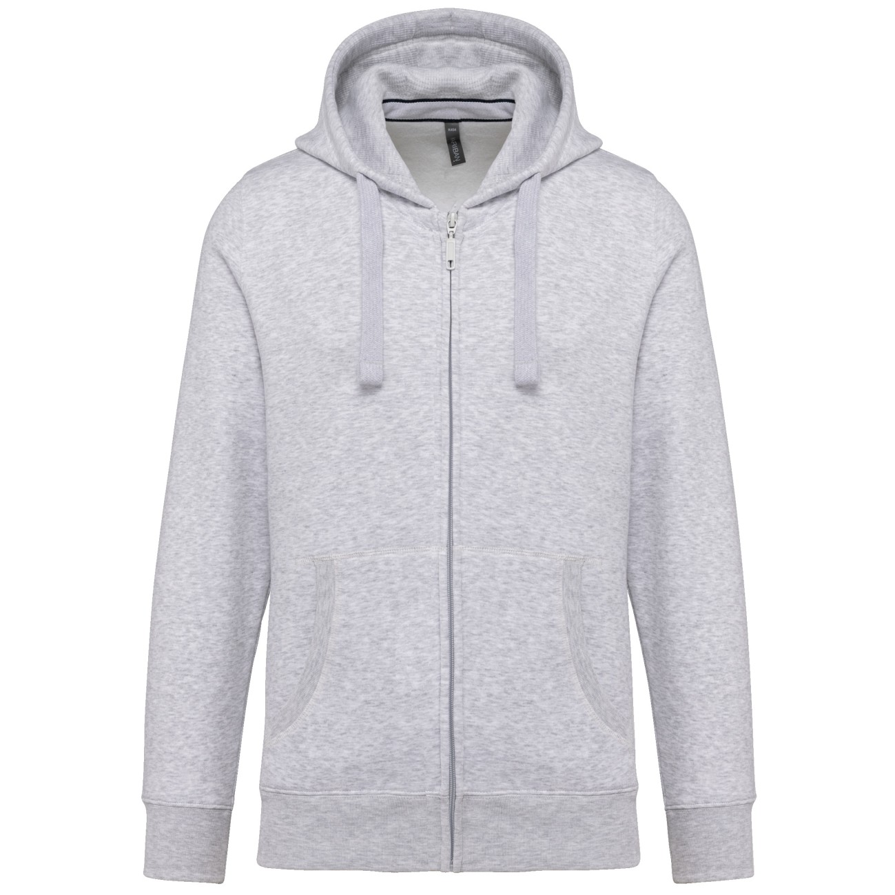 80% coton / 20% polyester (Ash Heather : 79% coton / 20% polyester / 1% viscose). Surface extérieure 100% coton peigné. Molleton gratté 3 fils avec traitement LSF (Low Shrinkage fleece). Bande de propreté contrastée à l'encolure (Navy pour le coloris Oxford Grey et Ash Heather ; Oxford Grey pour tous les autres coloris). Capuche doublée en nid d'abeille avec cordon de serrage. Poches kangourou. Finition bord-côte entrée de poches, bas de manches et bas de vêtement. Fermeture zippée.