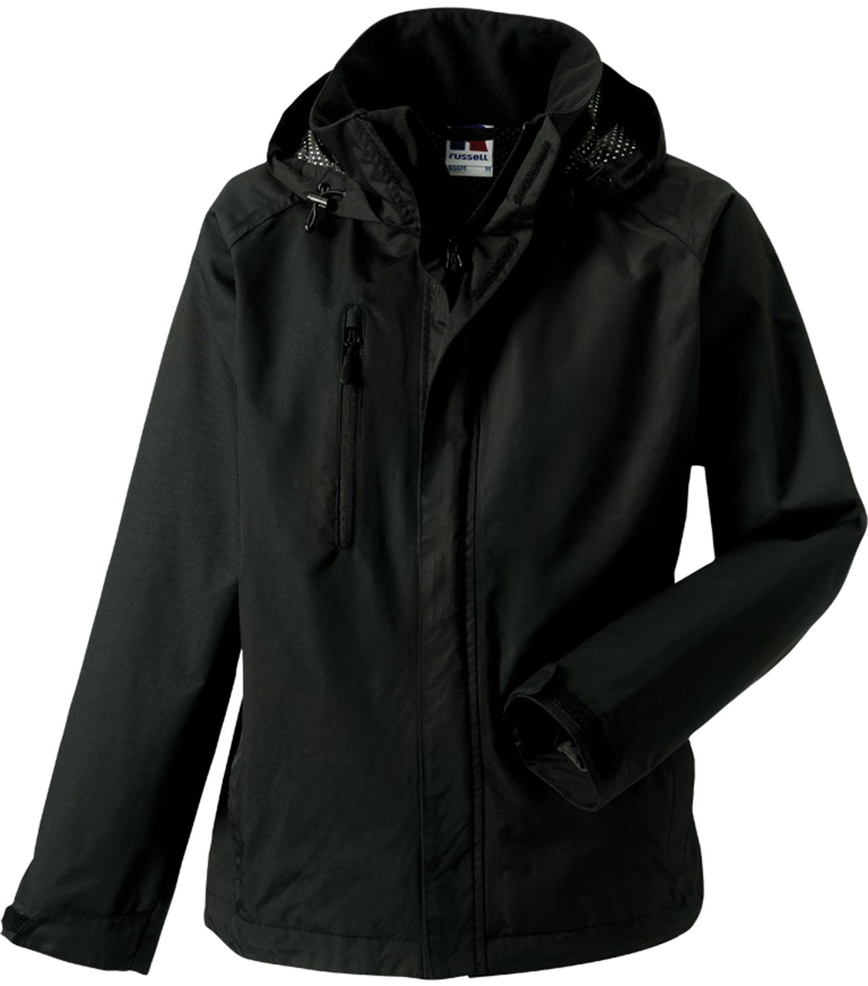 100% Nylon Taslan. Vêtement imperméable, doublé polyuréthane avec coutures étanches. Matière imperméable à 2000 mm. Propriétés respirantes : 2000 g/m² par 24 heures. Coupe adaptée aux activités extérieures : coudes articulés, manches raglan et capuche repliable. Fonctionnalités avancées : poches réchauffe-mains zippées et poche intérieure pour téléphone portable. Fermeture sous rabat pour une meilleure protection. Zips YKK inversés et col intérieur doux au toucher. Capuche 3 parties repliable. Entièrement doublé en maille filet, avec ouverture dissimulée à la base pour décorations.