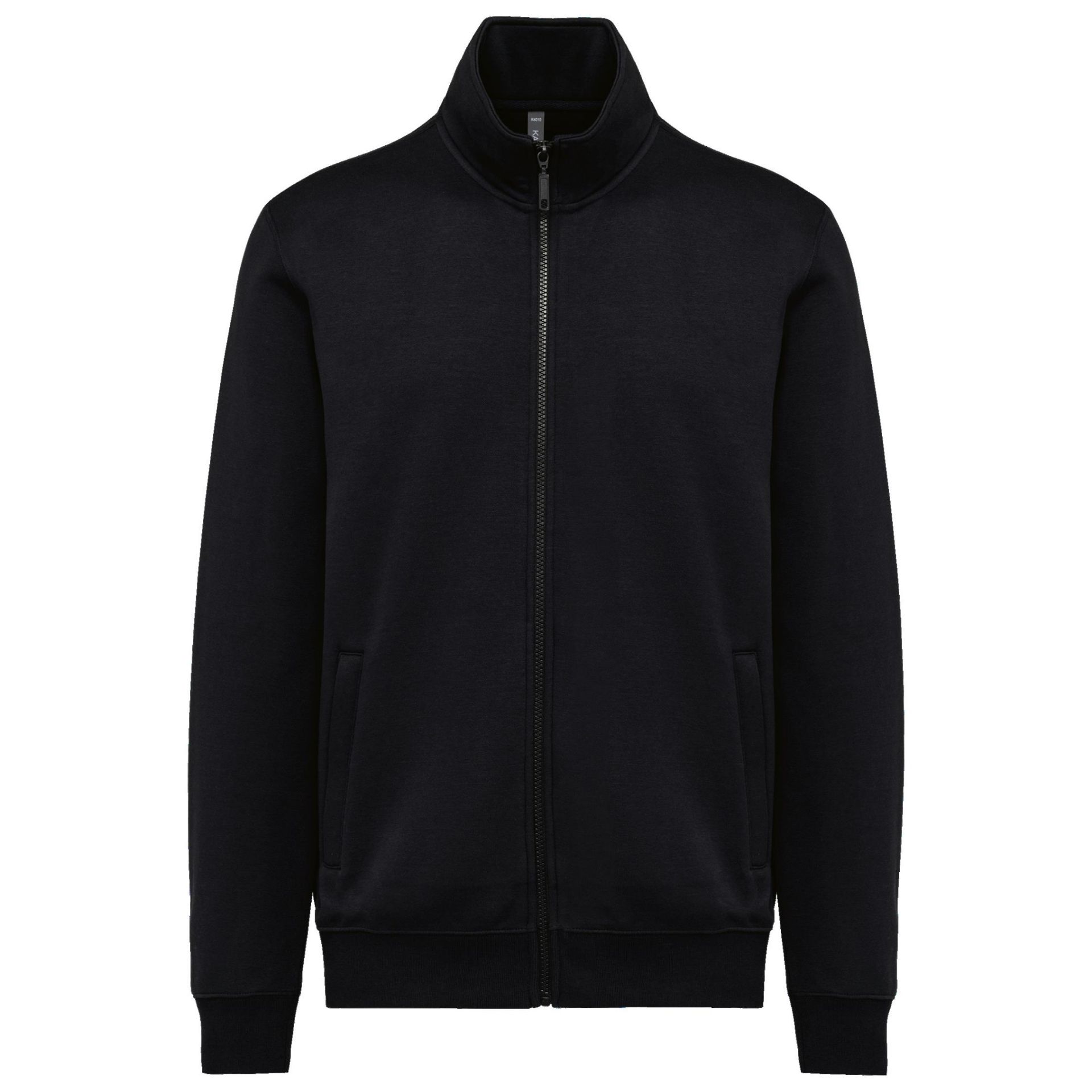 80% coton / 20% polyester. Surface extérieure 100% coton peigné. Traitement LSF (Low Shrinkage Fleece : molleton prérétréci). Molleton gratté 3 fils en coton peigné. Coupe ajustée. Manches droites. Col montant. Fermeture zippée plastique ton sur ton. 2 poches zippées et passepoilées côté. Finition demi-lune à l'encolure dos pour faciliter la personnalisation de marque à l'intérieur col. Finition bord-côte 1x1 bas de manches et de vêtement. Etiquette de marque Tear Away.