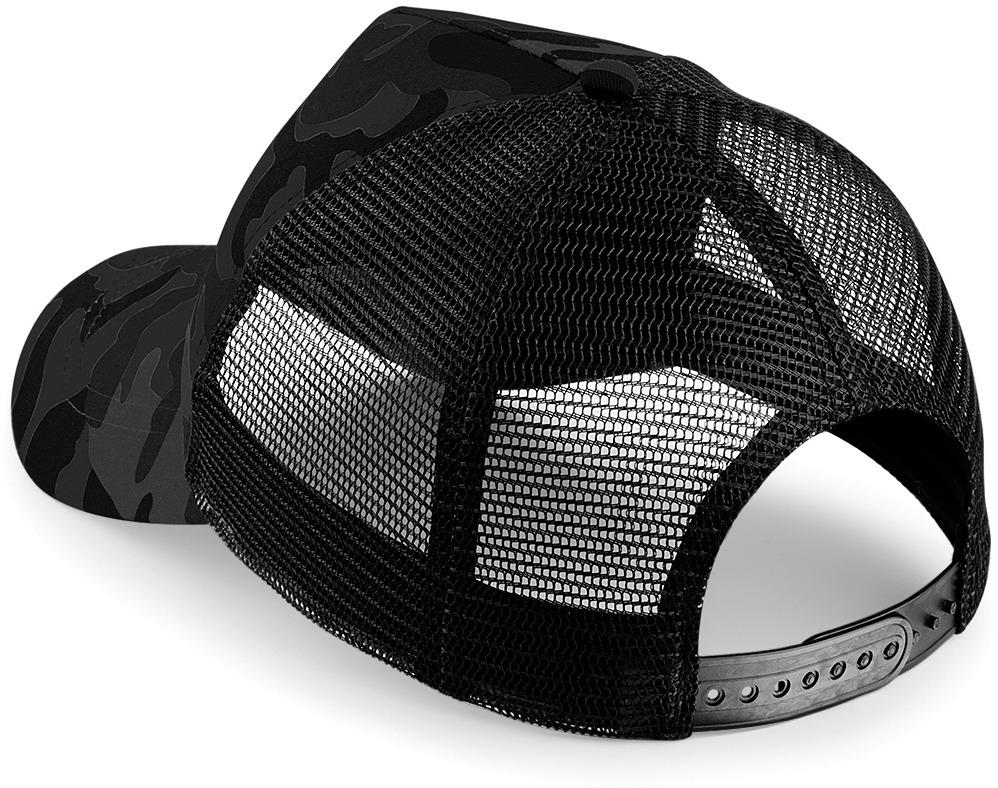 Voorpand en klep van 100% katoen. 100% Polyester mesh panelen achterkant. 5 panelen. Voorgevormde klep. Camouflagedetails. Retro stijl snapback maatregelaar. TearAway-label.